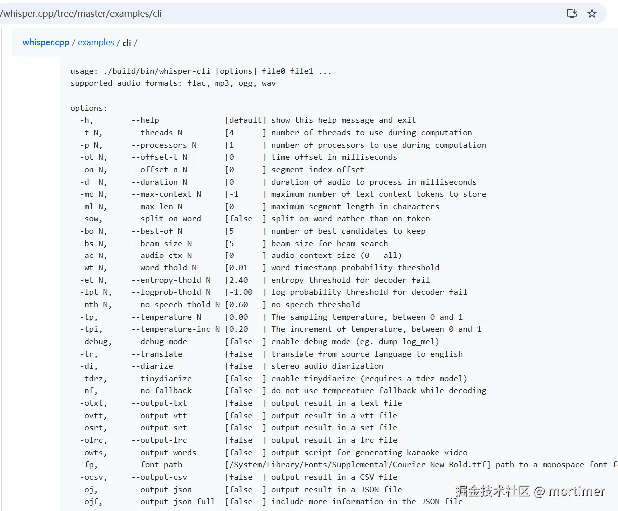的基本命令格式如下:whisper-cli [参数] -f [你的音频文件路径] -m [你的模型文件路径]