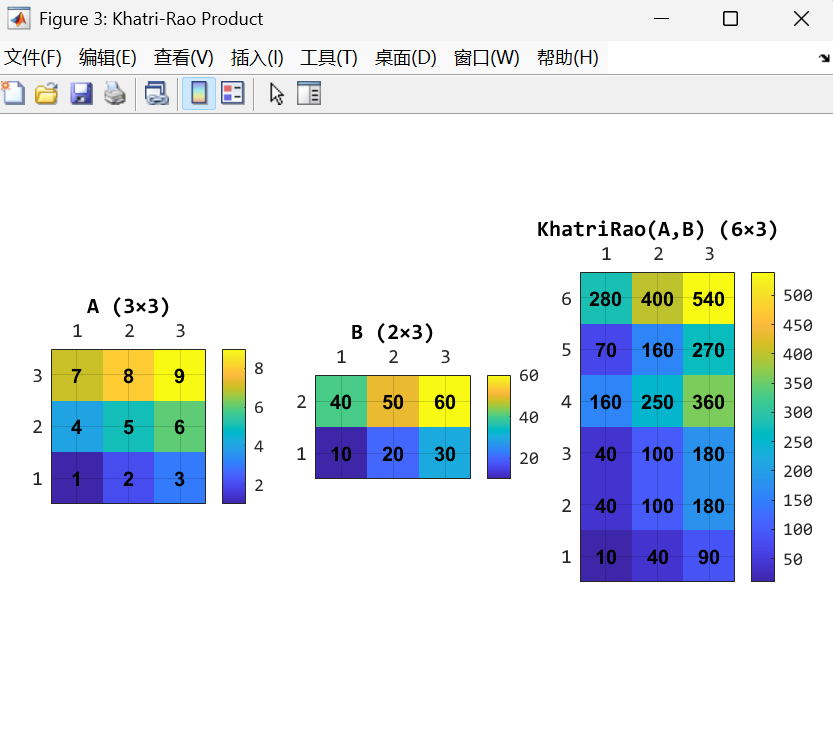 KR = khatri_rao(Akr, Bkr); % 6×3