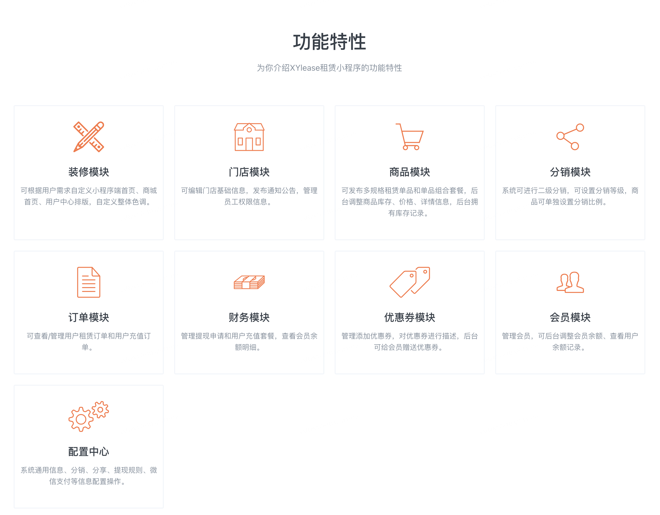 租赁商城小程序,提供用户物品租赁服务的应用程序,方便客户搭建各种类型的租赁场景服务。通过小程序端多角色进行平台管理,用户租赁商品缴纳租金及押金,员工端可操作商品出库和归还,订单完成后押金原路退回。