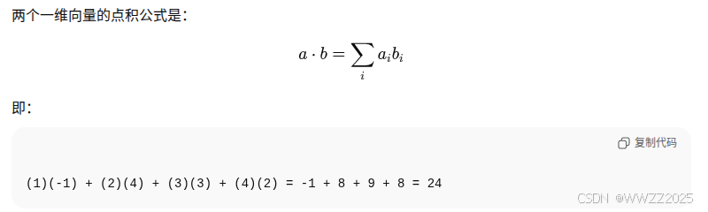 print(f"NumPy 1-D np.dot(b, a) = {c}, np.dot(a, b).shape = {c.shape} ")