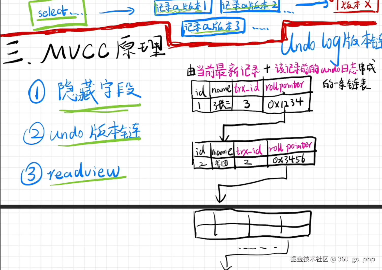 系统版本号 :每个事务都有一个唯一的ID,数据库通过该ID来区分哪些数据版本对当前事务可见。