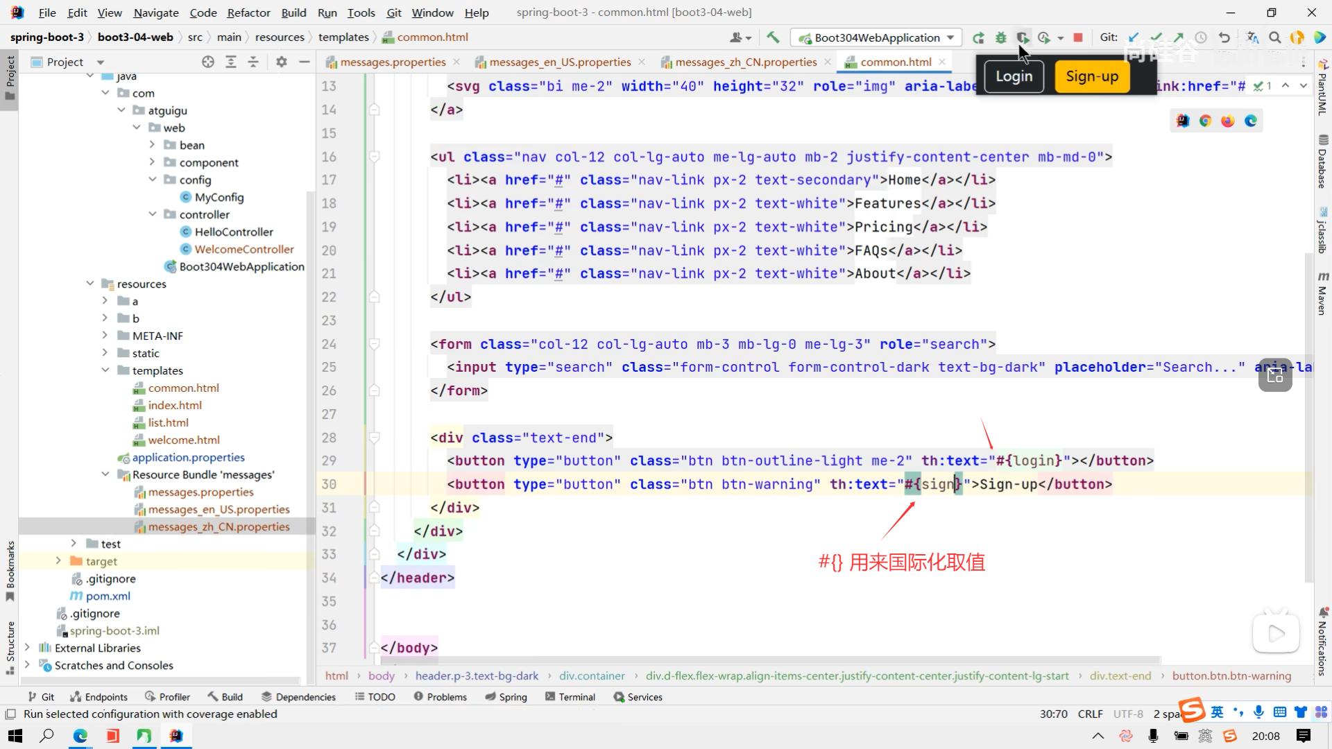Spring Boot 3零基础教程,WEB 开发 国际化 Spring Boot + Thymeleaf 笔记45