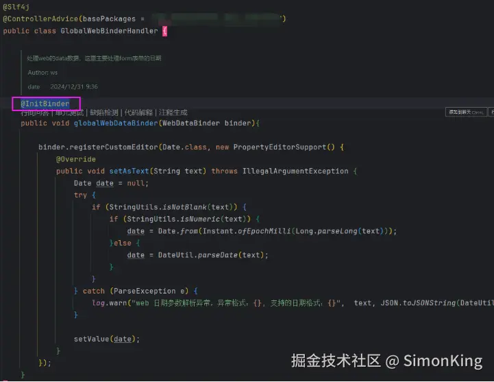 我们先来注册一个日期解析器,将字符串转化成日期。这个当然在前面的文章中通过@InitBinder