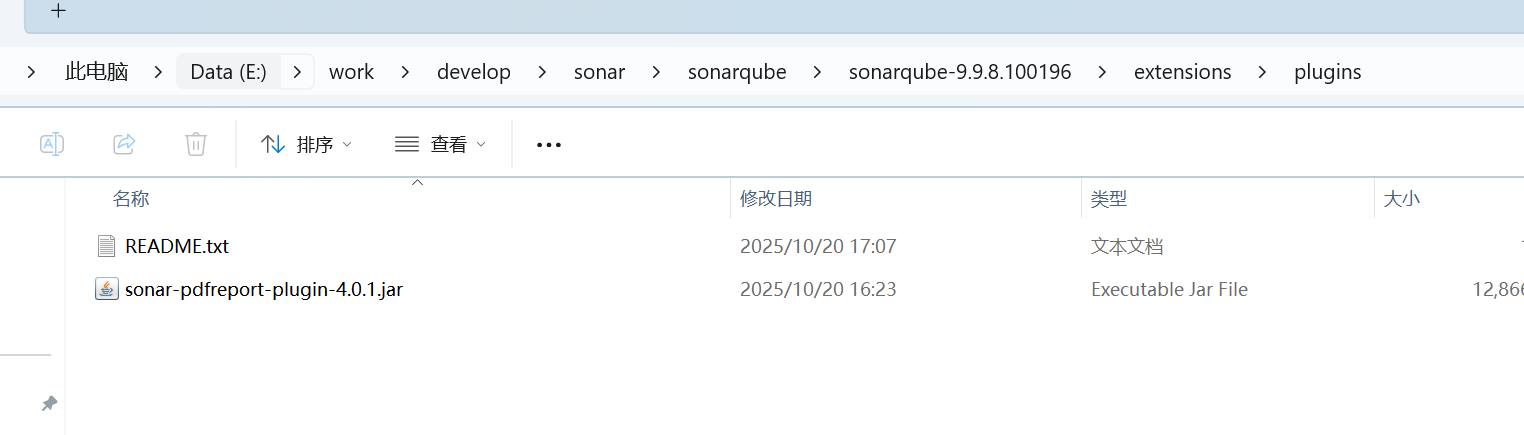 注意,我这边为了能够使用pdf插件(下载地址),选择的sonarqube版本为9.9.9LTA版本,亲测如果用目前官网最新25+版本,这个生产pdf的插件不支持,会各种错误。