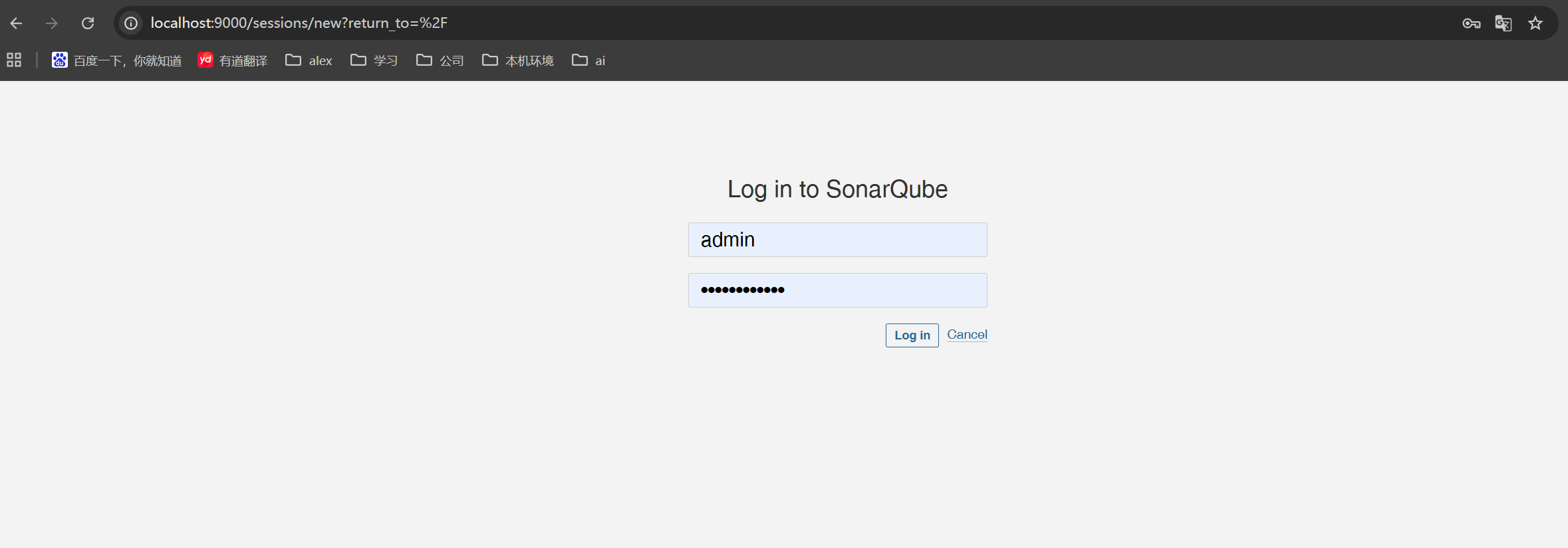 浏览器访问localhost:9000,跳转到如图登录界面,首次登录需要修改密码。