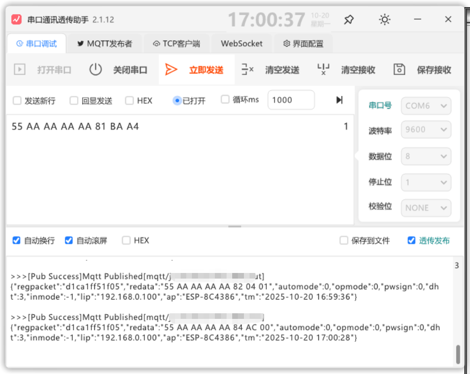 标准串口调试功能,可以本地调试网络控制器(控制4路16A继电器)