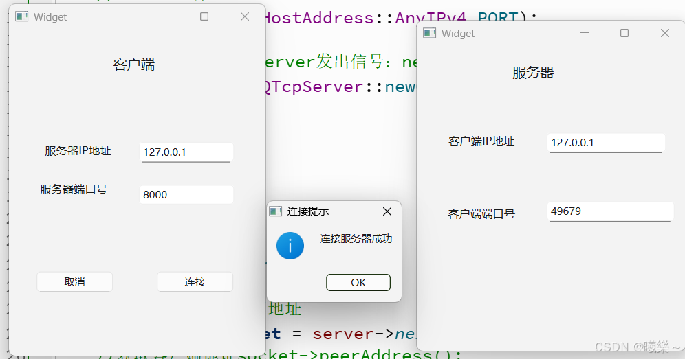 - 连接信号和槽connect(客户端连接后server对象 发出的信号)