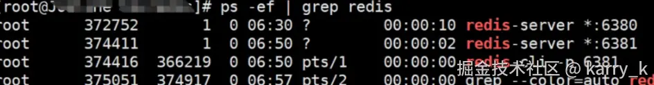 root 374416 366219 0 06:50 pts/1 00:00:00 redis-cli -p 6381
