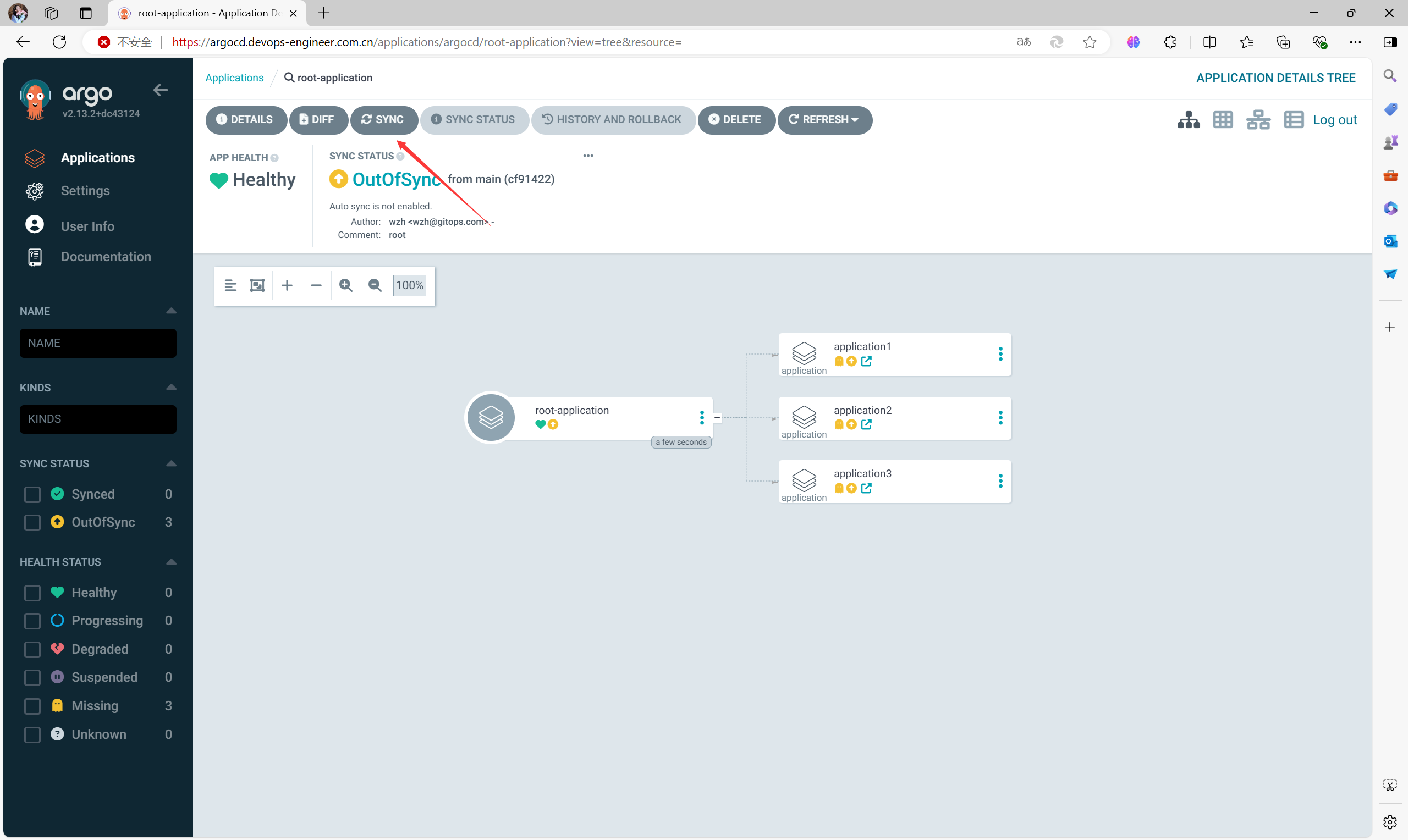 [root@master root-app]# kubectl apply -f root-application.yaml