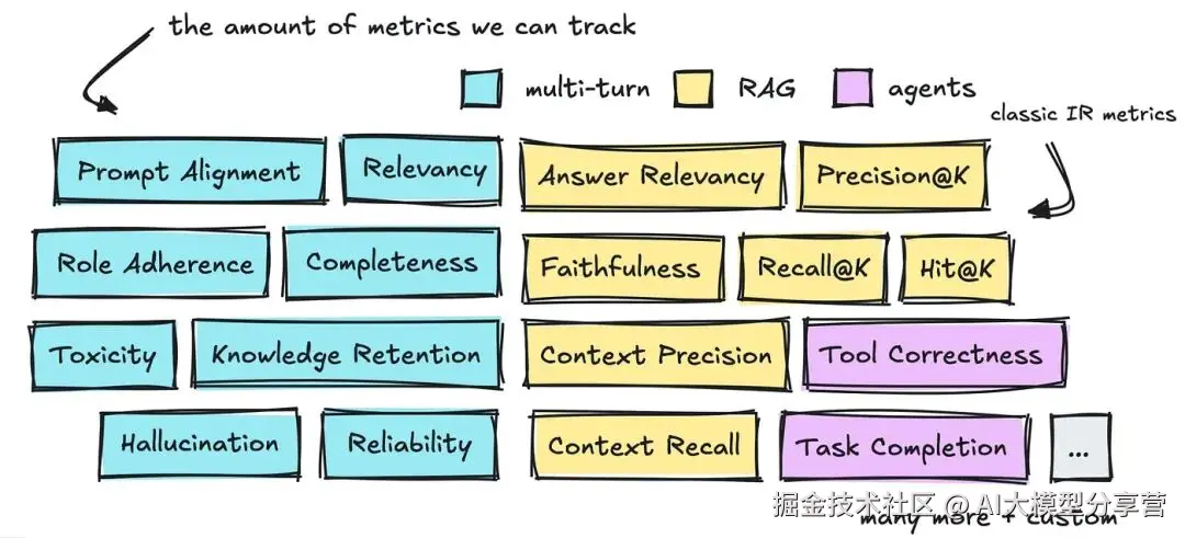 因此,本文研究了多轮对话机器人、检索增强生成(RAG)和智能体(Agentic)应用的常见评估指标,还简要介绍了 DeepEval、RAGAS 和 OpenAI 的 Evals 库等框架,帮你明确不同场景下该选哪个工具。