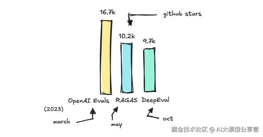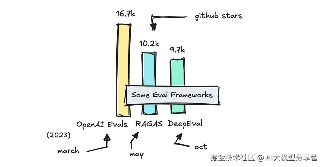- OpenAI 的 Evals 框架非常轻量化,需要用户自行设置指标,不过它提供了示例库帮助入门;