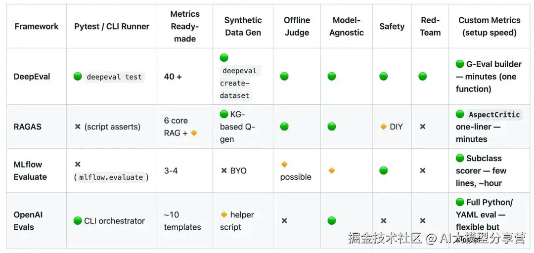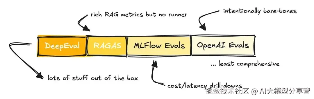 OpenAI 和 MLFlow 的 Evals 更偏向 "附加工具",而非独立框架;