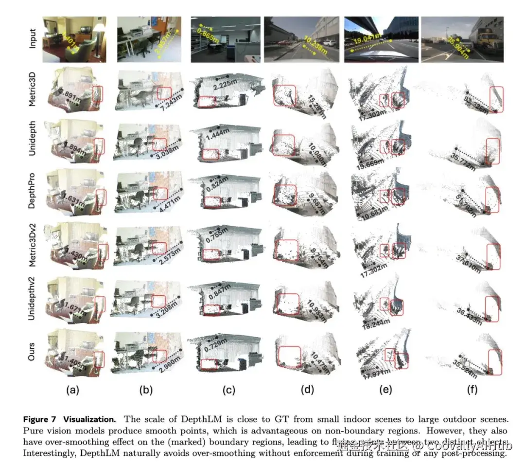 更令人惊讶的是,在未使用任何正则化或后处理的情况下,DepthLM生成的深度图更"干净":在边缘处的"飞点"数量明显少于传统模型,显示出自然的几何一致性。