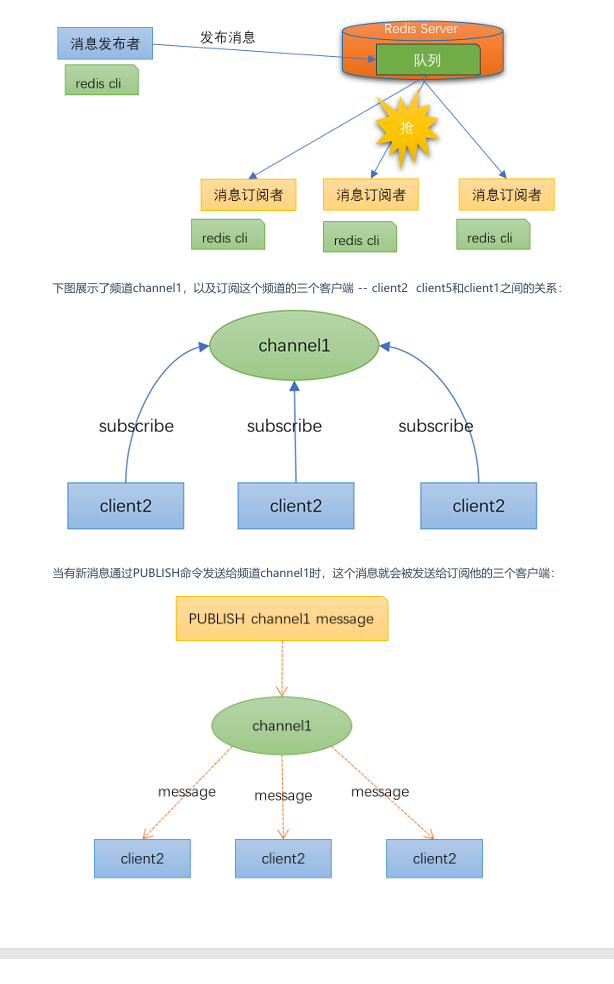 Redis发布订阅(pub/sub)是一种消息通信模式 :发布者(pub)发送消息,订阅者(sub)接受消息。