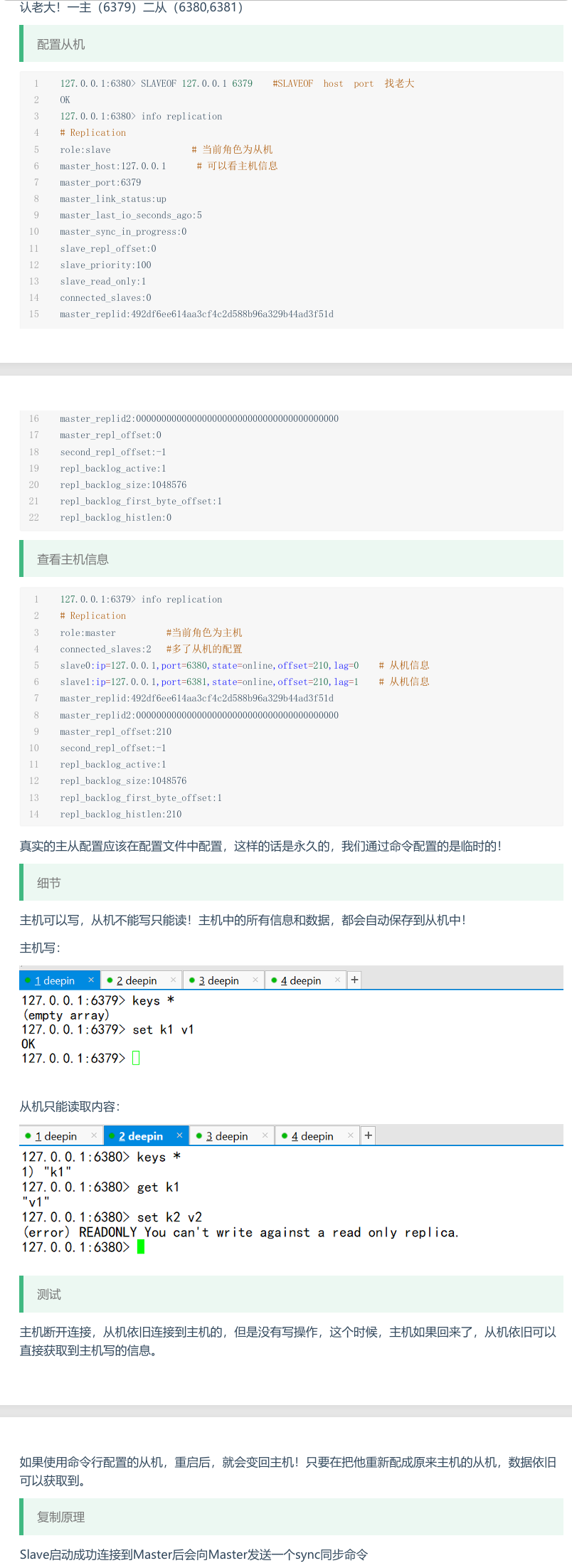 真实的主从配置应该在配置文件中配置,这样的话是永久的,我们通过命令配置的是临时的!