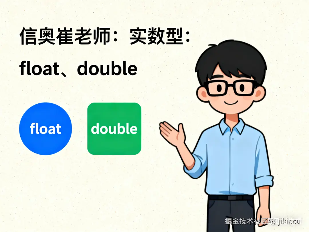 : 双精度浮点数。通常占用8个字节(64位),是C++中默认的浮点类型。它的精度更高(约15-17位有效数字),表示范围更大。在信息学竞赛中,几乎总是使用double