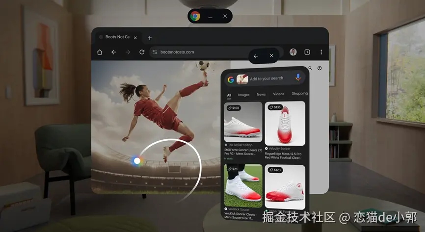 还有自由调整、伸缩的应用交互,同步进行操作的视野空间,这就是 Android XR 的不同至于,支持在 AR 和 VR 之间无缝切换: