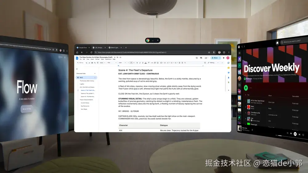 而如果在 Full Space 中 ,应用没有空间边界,可以利用 Android XR 的完整空间功能,例如 spatial UI 和控制虚拟环境,这个情况更像是一个普通大屏幕,不需要太多的定位操作。