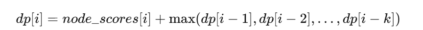 dp[i] = node_scores[i] + max(dp[i-1], dp[i-2], ..., dp[i-k])