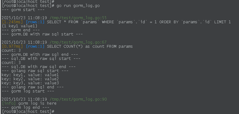 1、gorm常规用法和通过grom.DB的原生用法都会有日志。