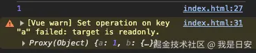 console.warn(`Set operation on key "${String(key)}" failed: target is readonly.`)
