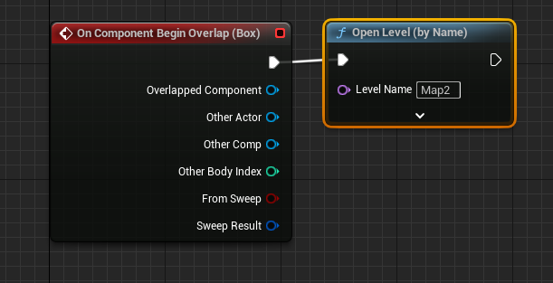 6.场景内放置触发框,调用Open Level加载测试即可。