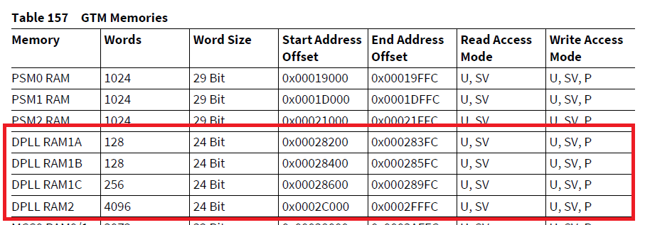 以下为GTM模块的地址0xF0100000u。举例DPLL_RAM2的绝对地址是: