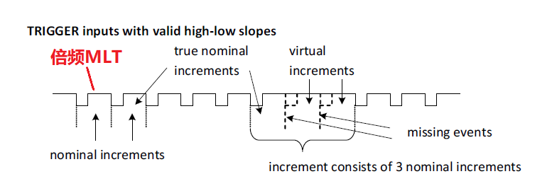 **bit0~9:**MLT,TRIGGER信号的乘数,即倍频。在两个正常TRIGGER事件(如两个曲轴转速信号的正常齿的下降沿之间)。如MLT设置为599,那么两个正常齿的下降沿之间被分了599+1=600份。