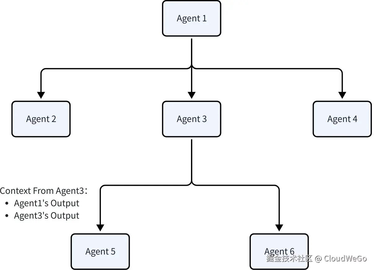Agent 协作 | 通过代码手动传递上下文 | 框架自动传递上下文 |