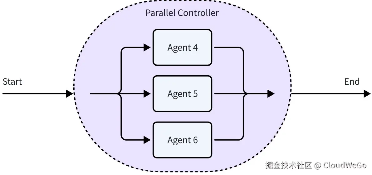 - Parallel Agent : 将配置中注册的 Agents 并发执行,所有 Agent 执行完毕后结束,运行遵循以下原则: