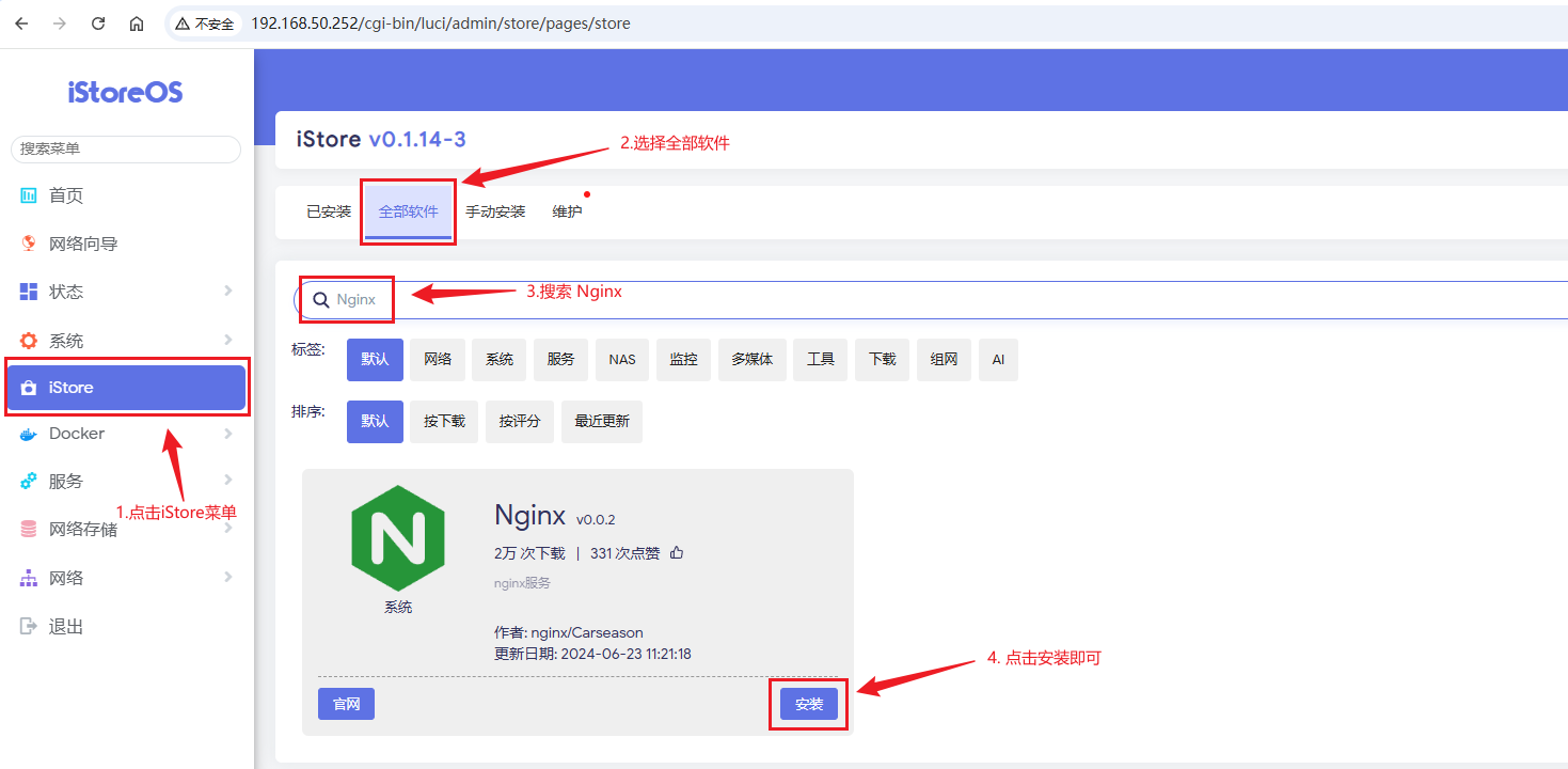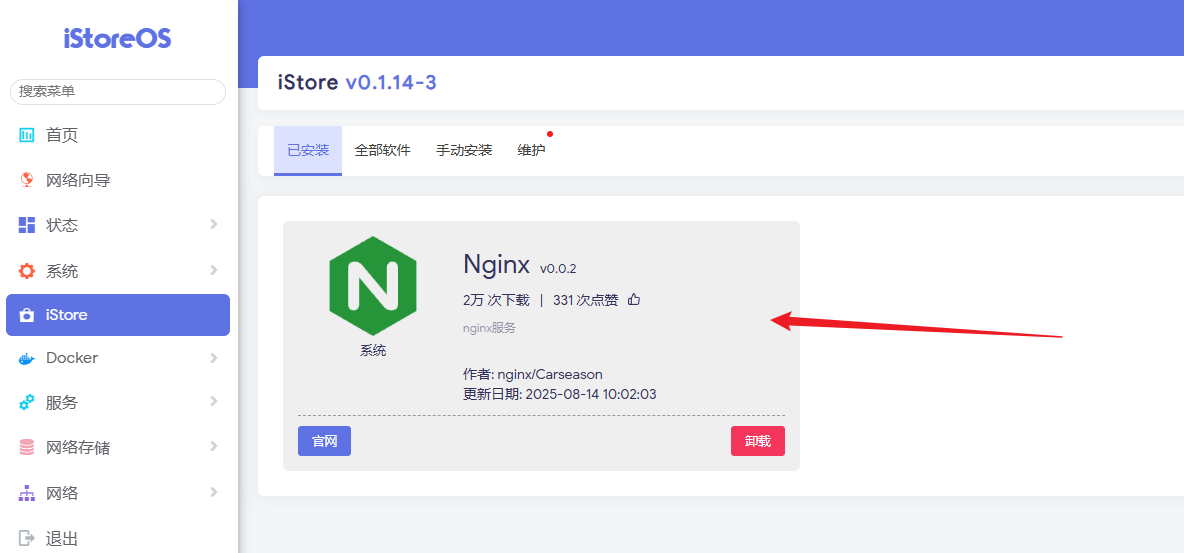 前面步骤已经在iStoreOS中安装了【Nginx】: