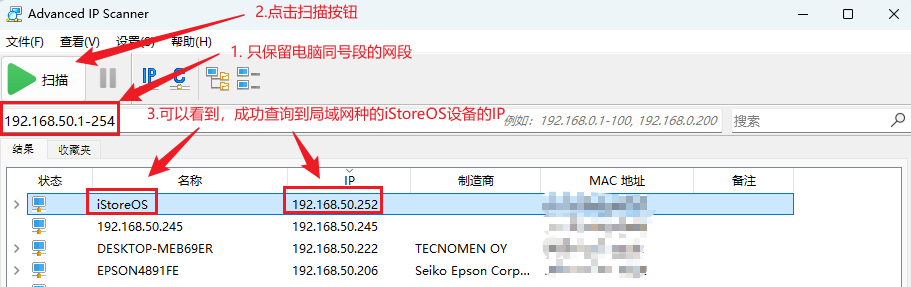 - Advanced IP Scanner:PC端局域网IP扫描工具,用于获取设备IP地址
