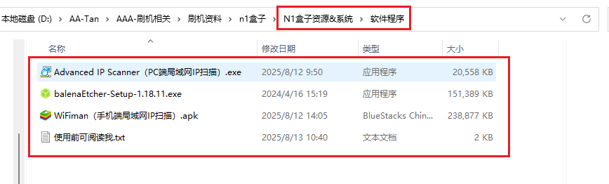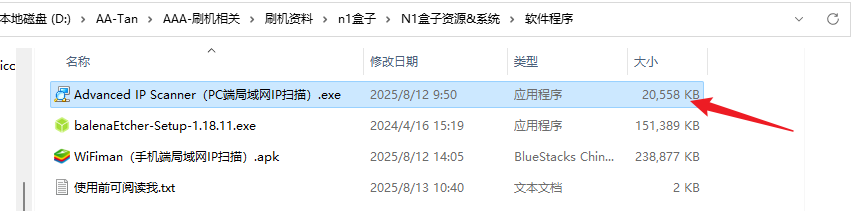 - Advanced IP Scanner:PC端局域网IP扫描工具,用于获取N1盒子的设备名称和局域网IP地址