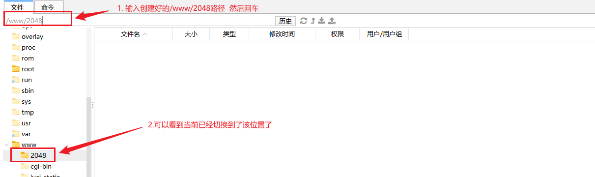 接下来,需要创建2048小游戏的静态资源目录,前面设置了路径为"/www/2048",所以也需要创建该位置,输入如下命令: