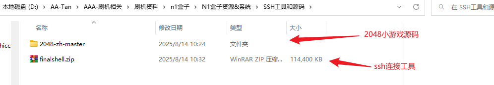 下载下来后可以看到如图有一个2048小游戏的源码和一个ssh的连接工具finalshell: