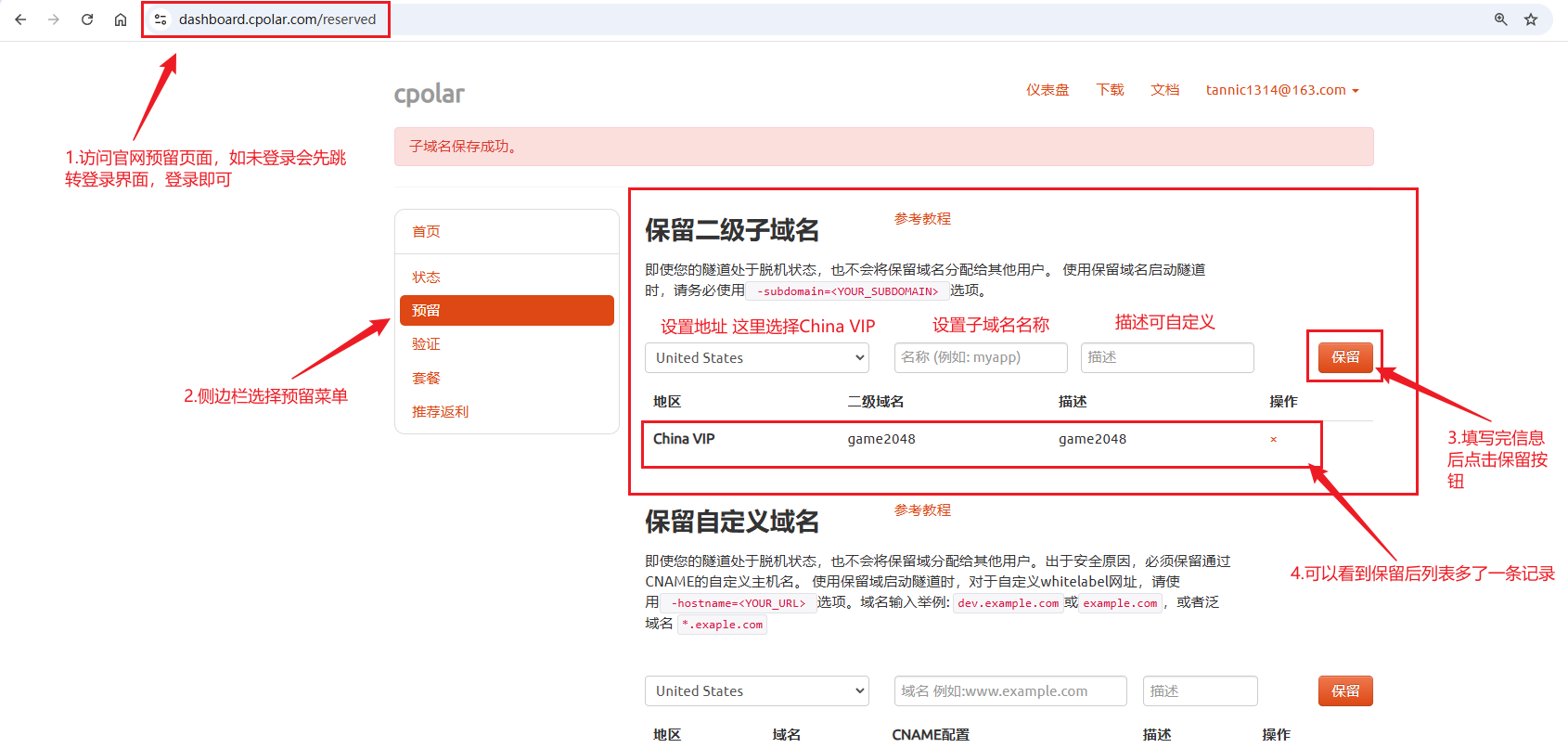 进入官网的预留页面:https://dashboard.cpolar.com/reserved