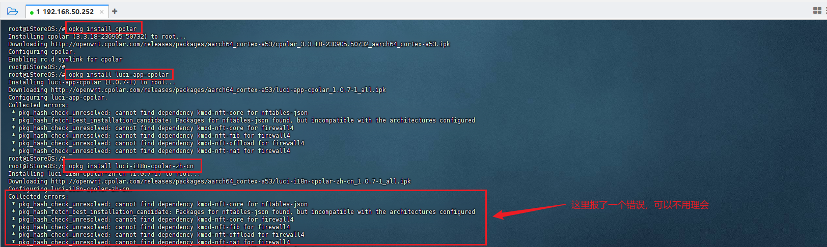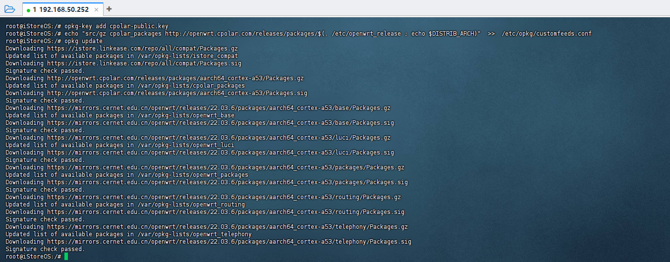 下载完成以后,添加该公钥,以及添加cpolar的opkg仓库源: