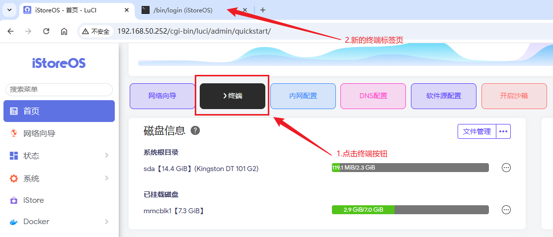 刷入iStoreOS系统后,在系统终端中尝试使用reboot update