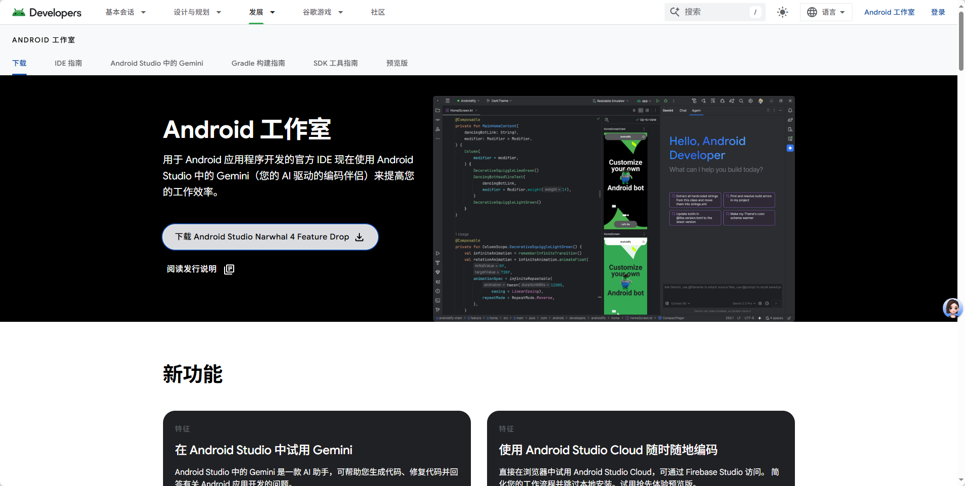 - Android Studio 2025 :从 Android开发者官网 下载,提供各系统版本,国内用户可通过华为、小米等镜像站点加速下载。