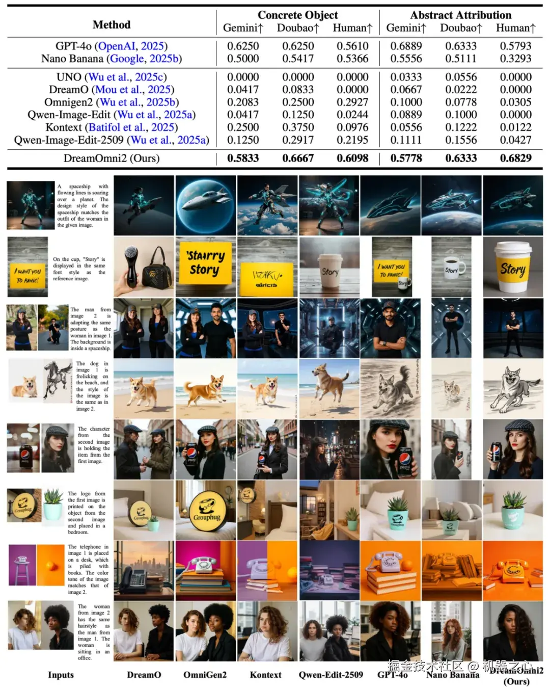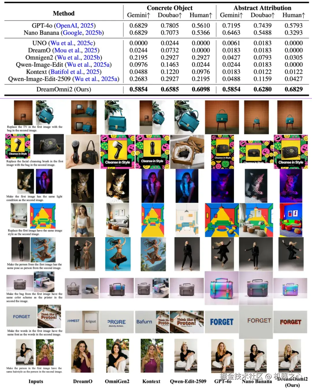既然 DreamOmni2 的效果如此能打,不禁让人好奇,它与当前主流的生图模型(比如 GPT-4o 和 Nano Banana)相比,究竟谁更胜一筹?要知道,DreamOmni2 可是开源的,这一点本身就让它在多模态生图领域显得格外特别。