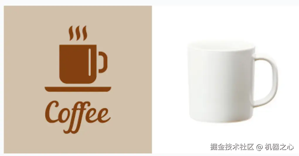 输入如下图片,然后要求 DreamOmni2「将第一张图片中的徽标印在第二张图片中的物体上并放置在桌子上(The logo from the first image isprinted on the object from the second image and placed in the desk)」。
