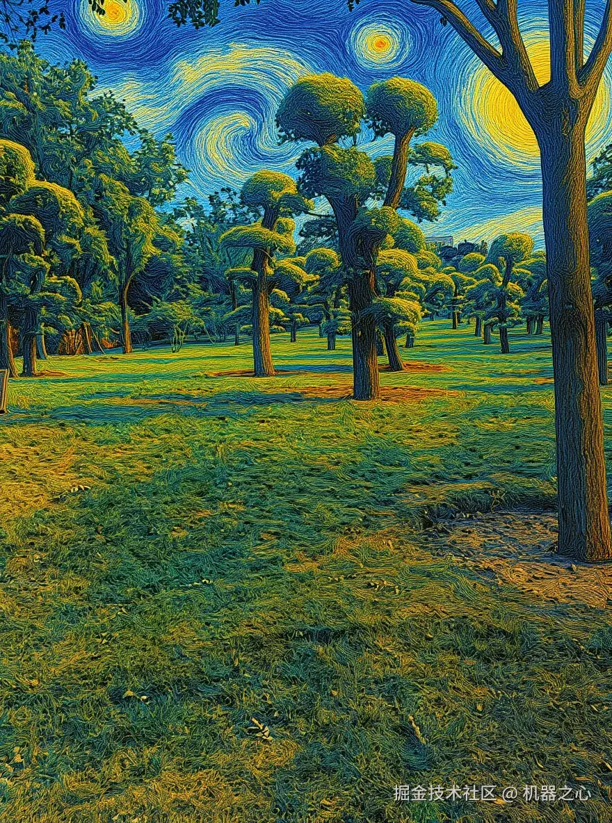 看起来,这类换背景的任务已经难不倒 DreamOmni2 了。既然如此,我们上难度,尝试让模型将一张照片的风格转换为另一种风格。这类任务对模型的理解力与生成控制力要求更高:它不仅需要识别画面内容,还要掌握风格的语义特征,如色彩氛围、笔触质感等。