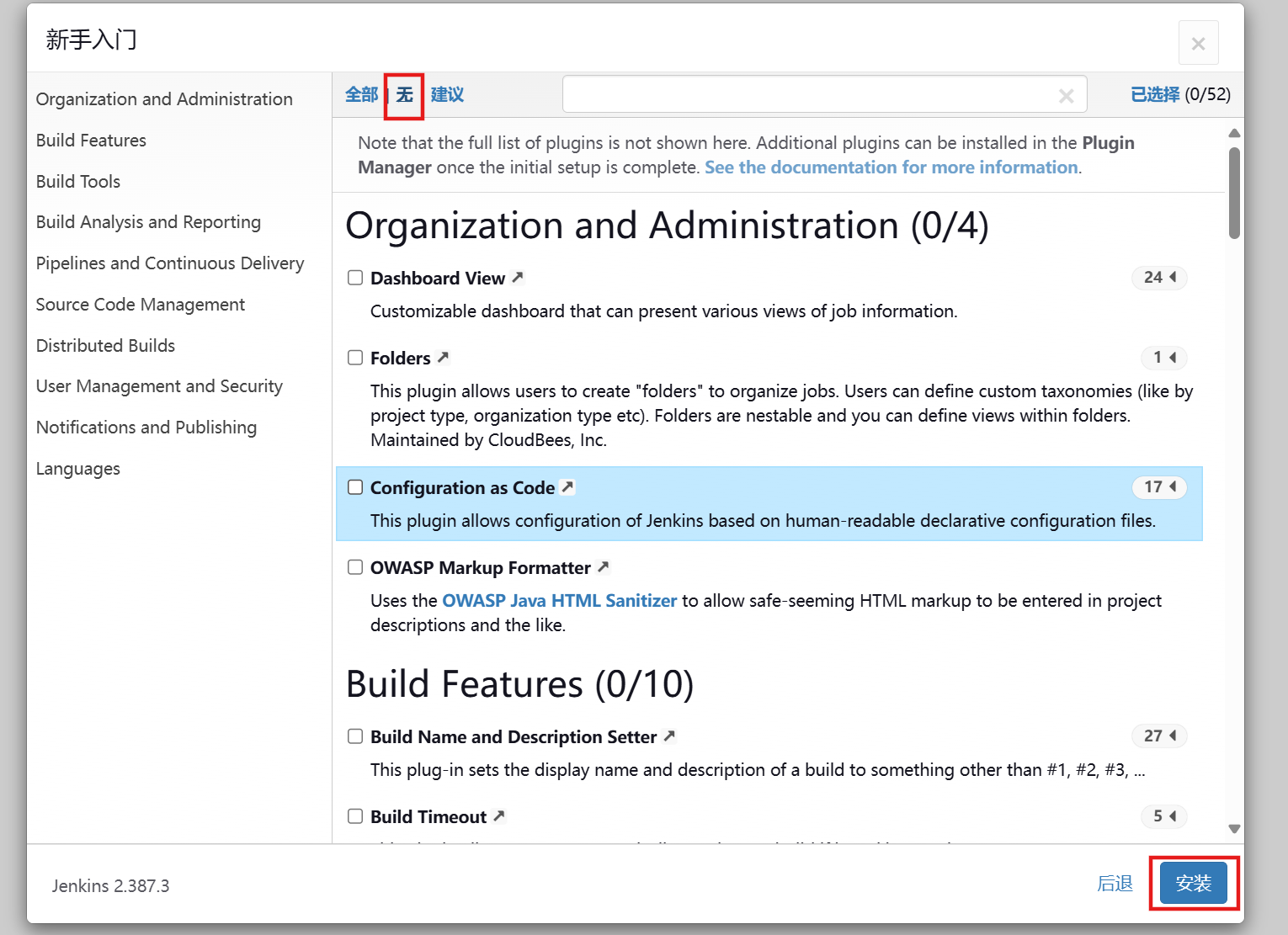 选择无,进行安装,后期需要哪些插件就安装哪些插件: