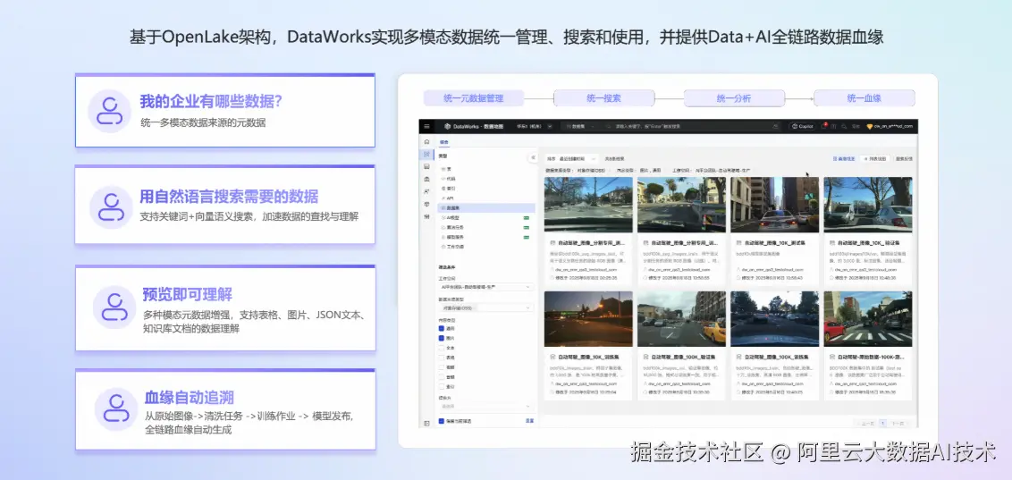 面对日益增长的非结构化数据,DataWorks 推出全新 多模态数据管理体系,帮助企业实现"看得见、找得到、管得住"。