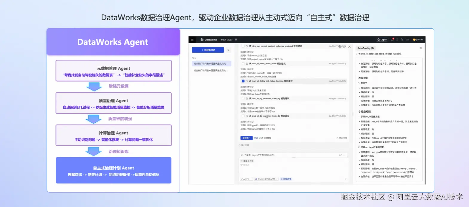 DataWorks 数据治理Agent将 AI 深度融入数据治理全流程: