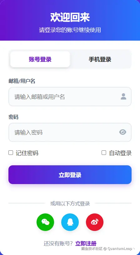 - 双登录方式:用户可以在账号密码和手机验证码之间无缝切换