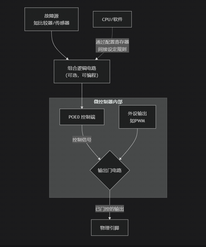 ②能够直接与故障源链接,故障源不需要再通过CPU处理再去控制PWM输出