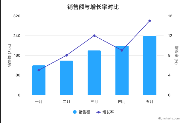 趋势与总量对比 | 折线图 + 柱状图 | 财务报表、销售趋势 |