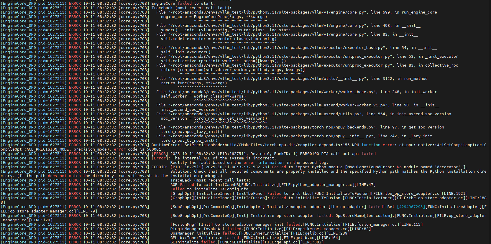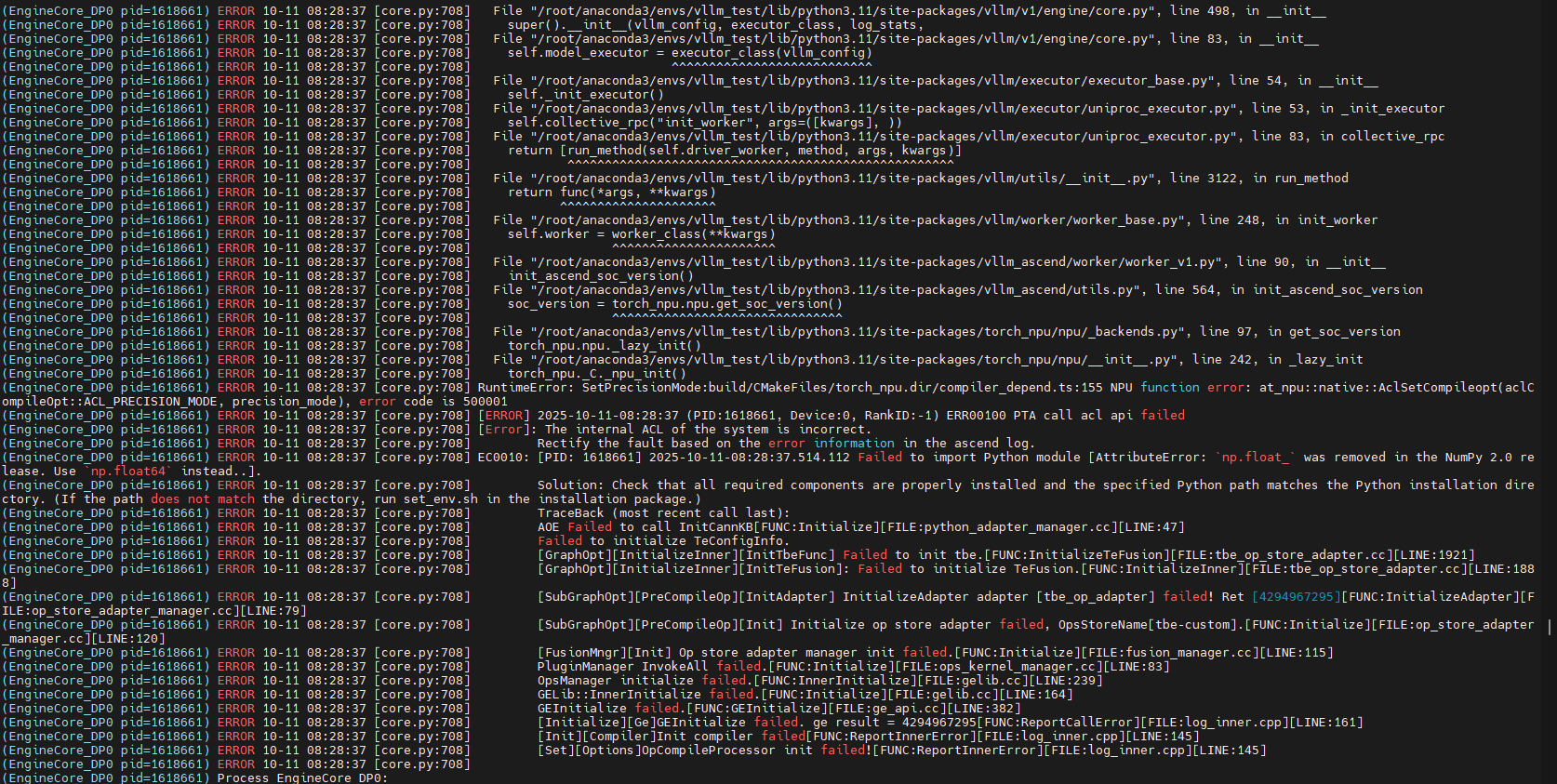 从错误日志可以清楚看到,这是 CANN 安装不完整的问题: