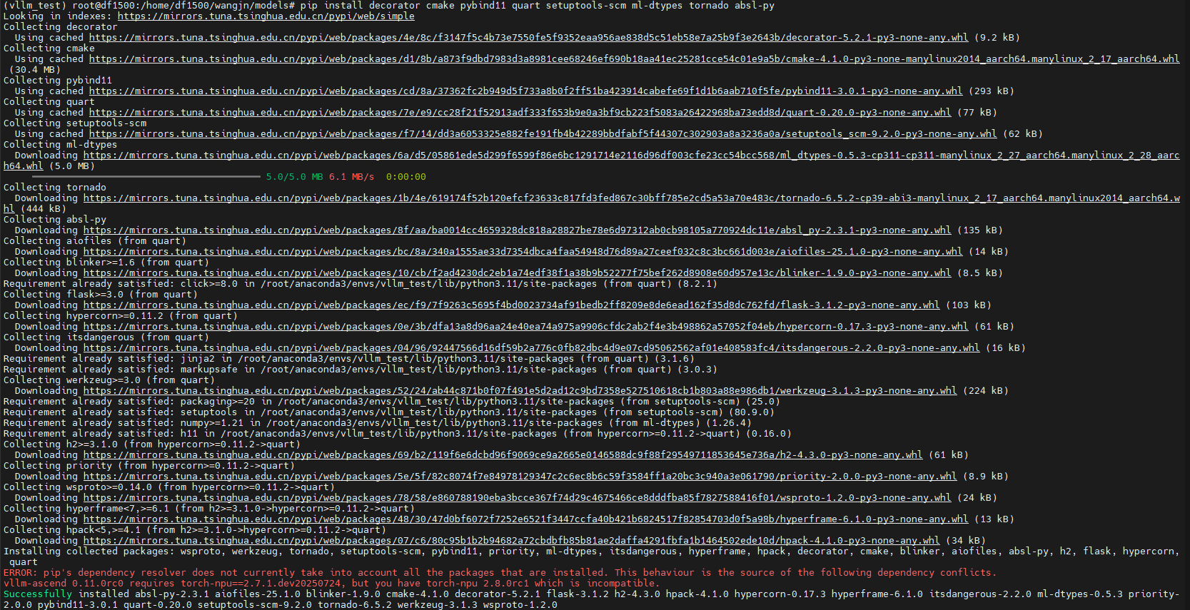 pip install decorator cmake pybind11 quart setuptools-scm ml-dtypes tornado absl-py